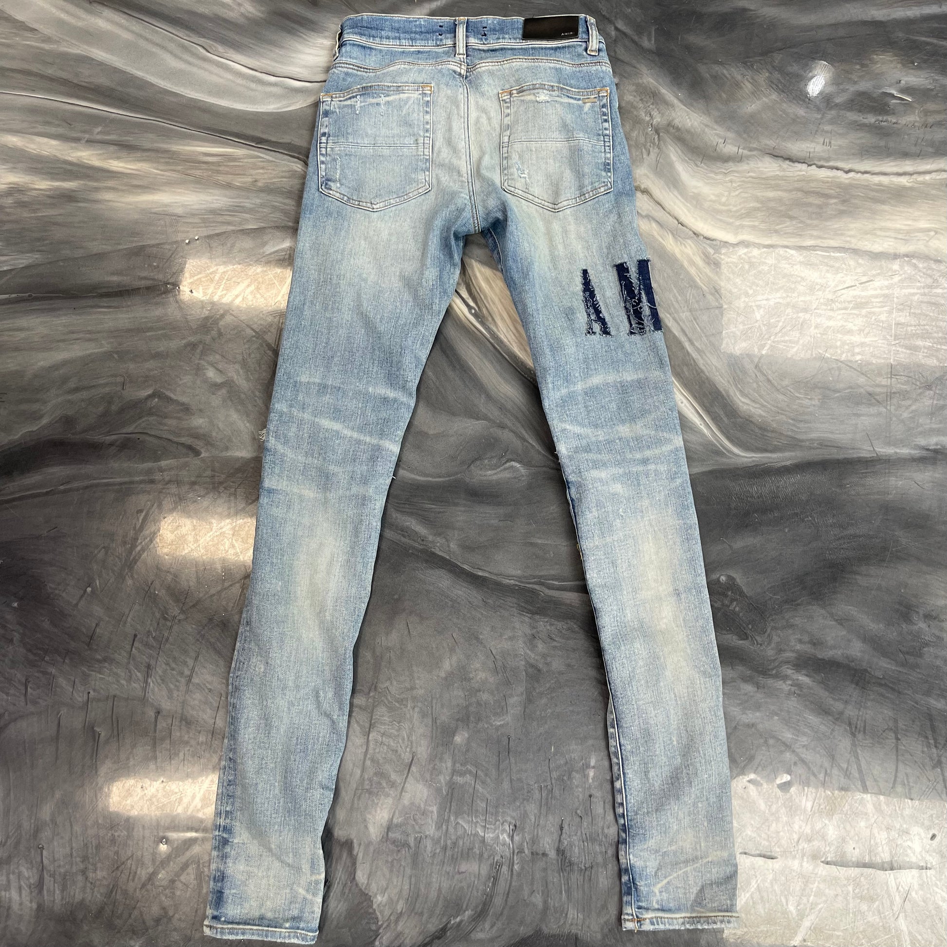 Amiri Clay Indigo Blue Denim Core Applique Logo Jeans